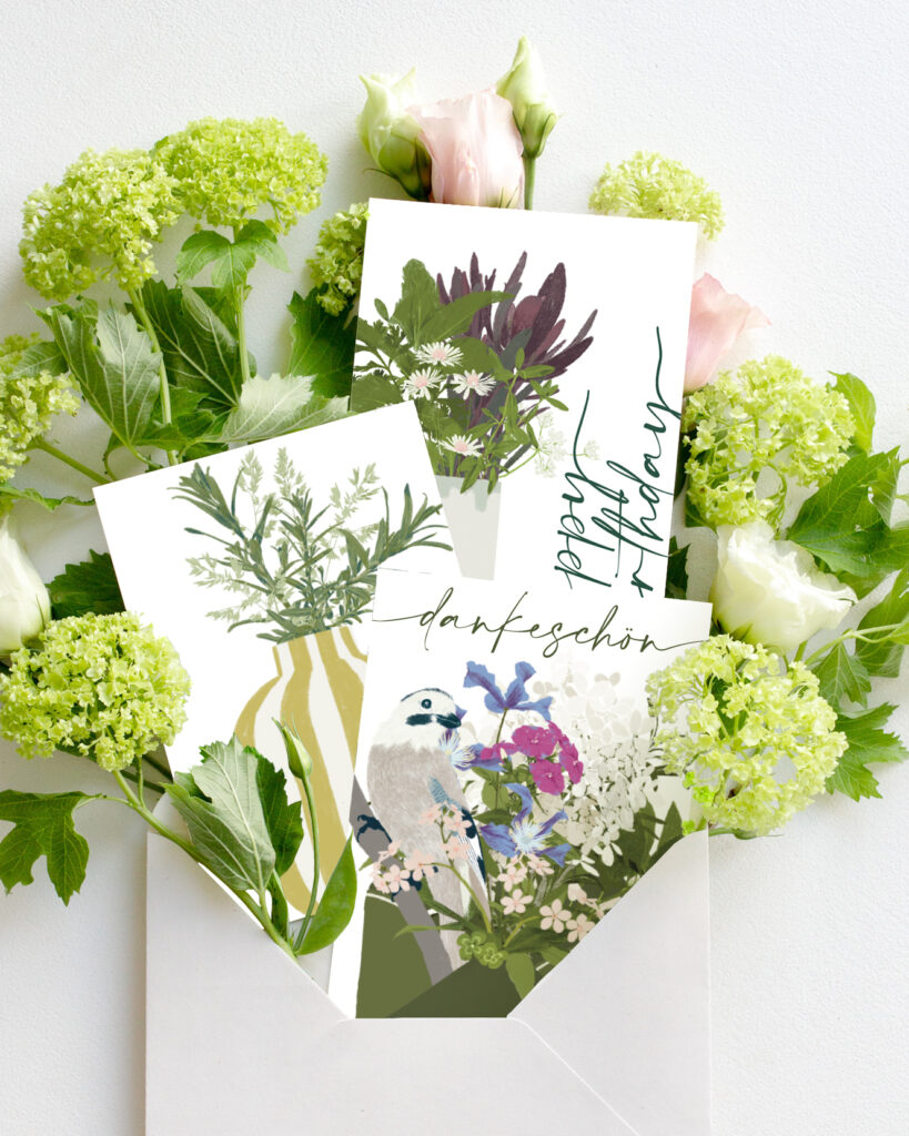 Im Wildblumen Atelier entstehen von Hand illustrierte Papeterie Produkte sowie Designs für Drucksachen und Digitales für Design Projekt Kund:innen.